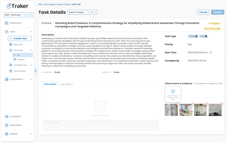 Accountability made simple. Attach supporting files, images, or activity logs directly to tasks. Every update carries proof, so managers can trust progress and teams can avoid back-and-forth clarifications. It’s transparency, built right into your workflow.