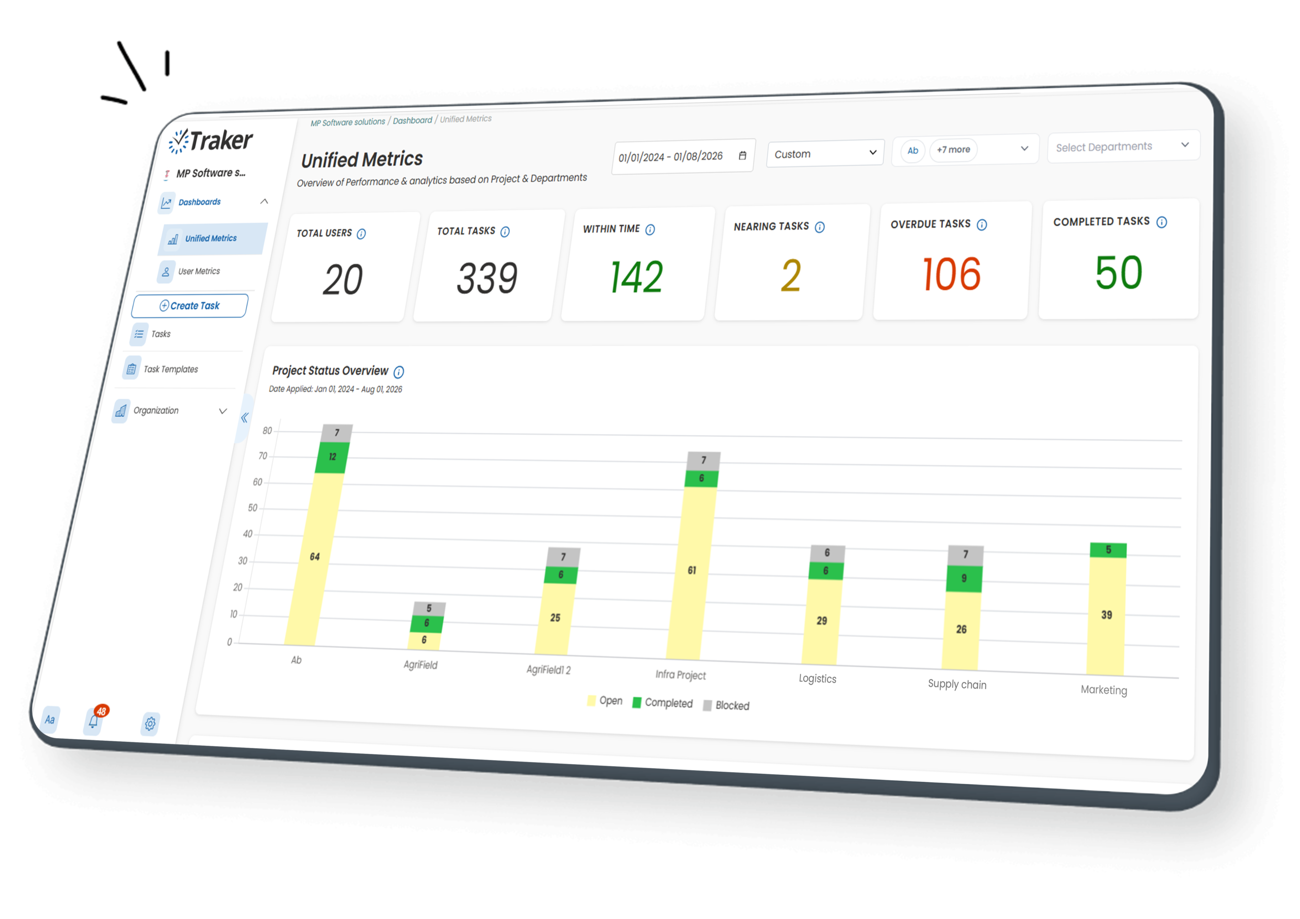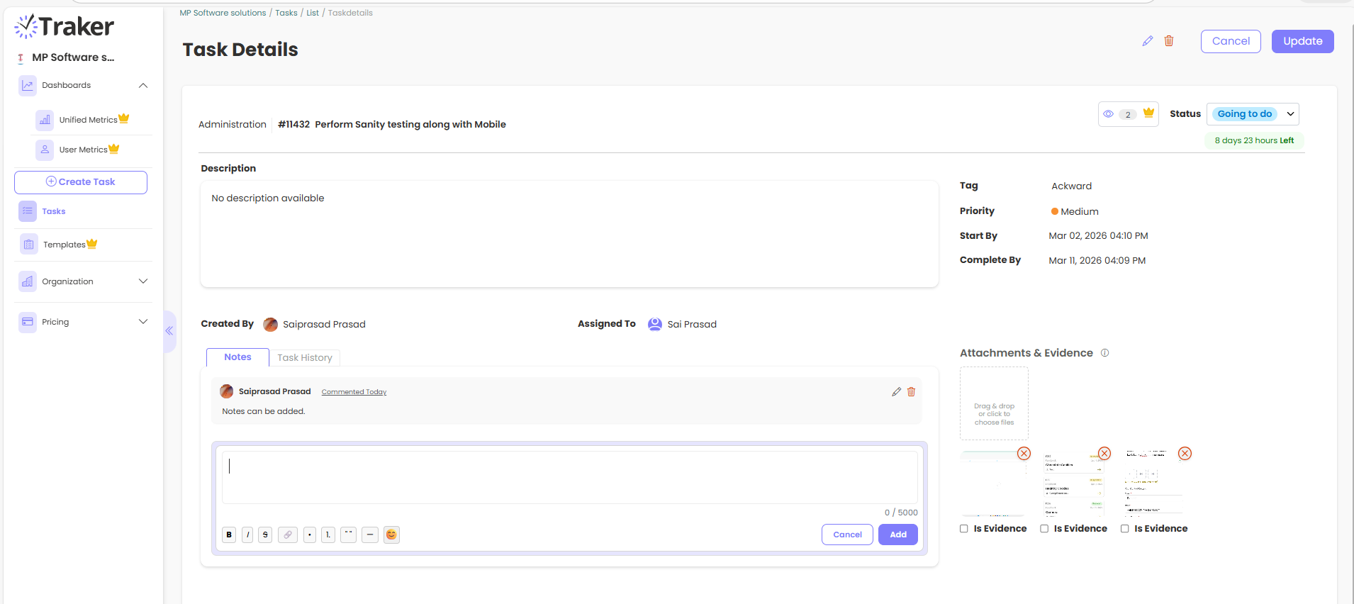 Your work doesn’t sit still — neither does Traker. Designed with mobile-first access, you can track projects, assign tasks, upload evidence, or check reports straight from your phone. Whether you’re in the office, on-site, or on the go, productivity stays in your pocket.